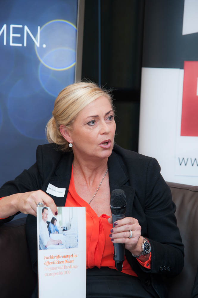 Roland Schüßler, Vorsitzender Geschäftsführung der Agentur für Arbeit Düsseldorf, erklärte ein Pilotprojekt, bei dem eine lebensbegleitende Betreuung von Arbeitsnehmern stattfindet. Dr. Sandra Düsing, Director People and Organisation bei PricewaterhouseCoopers stellte Teilergebnisse ihre Studie vor, bei der es in wenigen Jahren an über fünf Millionen Fachkräften mangelt. Dieses Warnsignal müsse man ernst nehmen und Strategien entwickeln.